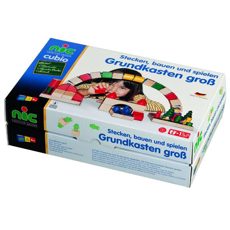 Відкрий світ можливостей разом із німецьким виробником іграшок nic. Конструктор серії "Cubio" на 96 деталей постачається у великій подвійній упаковці. Розміри коробки: 30х18х9 см. Упаковка відкривається як книжка, перетворюючись на дві поєднані коробки. В інструкції дитина знайде приклади, за якими можна скласти набір. Деталі конструктора вироблені із натуральної деревини натурального кольору або вкритої кольоровими фарбами на водній основі. Матеріал екологічний і безпечний для дітей. Конструктор призначений дітям від 1,5 років. Він чудово поєднується із іншими наборами конструкторів серії "Cubio".