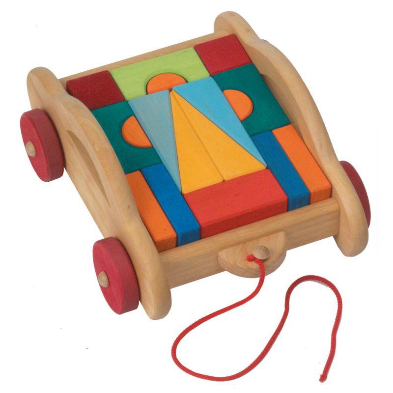 Чудовий розвиваючий конструктор із дерева «Тоскана з візочком» німецького виробника іграшок nic для найменших. Конструктор запакований у картонну упаковку, у якій знаходиться візочок із 17 розвиваючими фігурами. Елементи конструктора виконані із натуральної деревини, вони якісно оброблені і вкриті кольоровими фарбами на водній основі. Візочок має зручні ручки для переносу іграшок, а також до нього прив’язана червона мотузка, довжиною 65 см. Розміри набору: 28х19,5х10 см. Конструктор не містить дрібних деталей, тож ним можуть бавитись діти від 1 року.