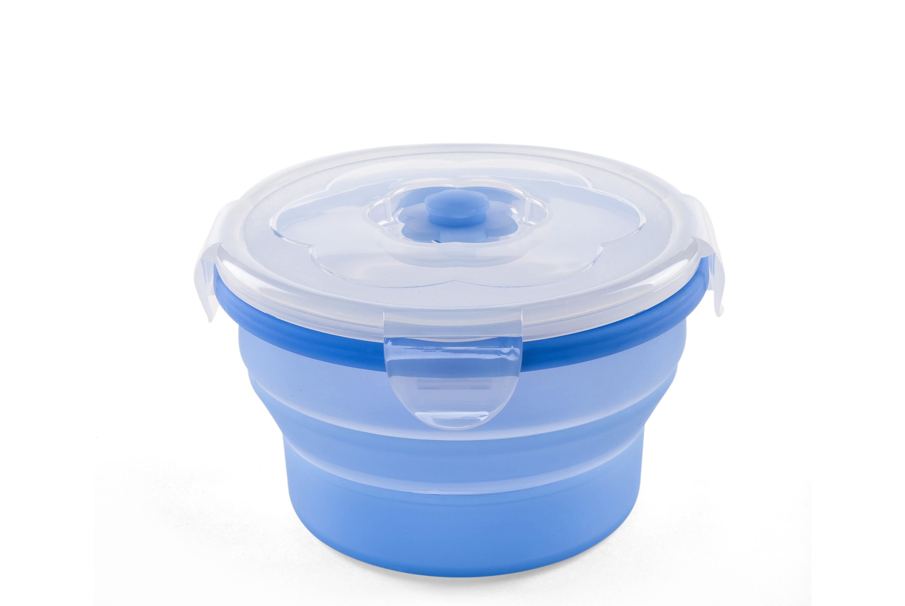 Силіконовий контейнер для зберігання харчових продуктів. Універсальний контейнер для будь-яких продуктів. Контейнер підходить для зберігання продуктів харчування вдома, його також зручно брати в дорогу. Конструкція розбірна, у розкладеному стані займає мало місця. Оснащений захисною кліпсою на кришці. Може використовуватися в мікрохвильових печах, в холодильнику або морозильній камері. Силікон запобігає утворенню бактеріям у продуктах.