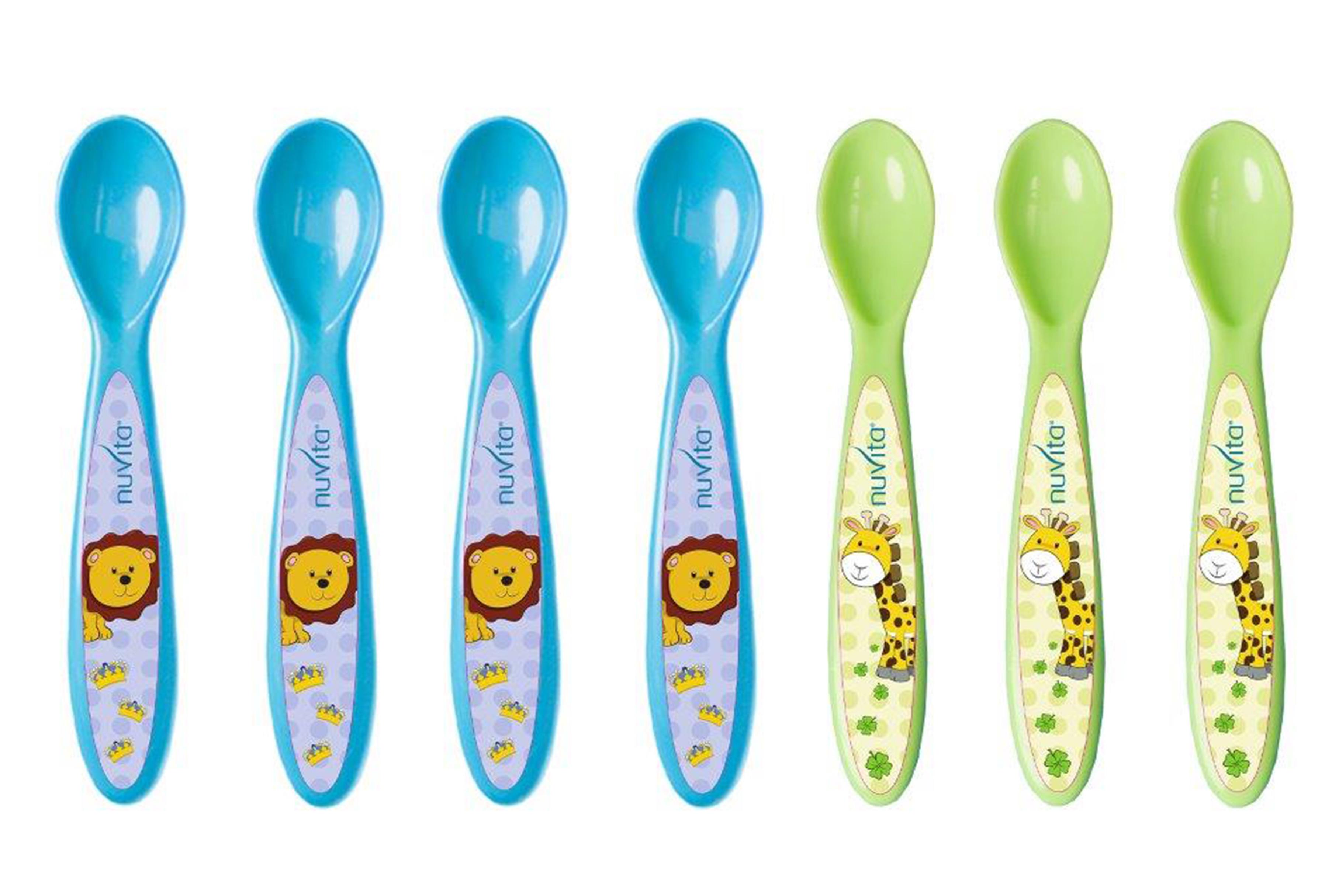 Італійський бренд Nuvita пропонує яскравий набір ложечок для дитячого харчування. У комплекті 7 ложечок: 4 блакитні з малюнком лева і 3 зелені з малюнком жирафа. Прилади оптимального розміру та зручної форми для маленьких дитячих ручок. Вони вироблені із безпечного пластику, що не містить бісфенол-А. Ложечки можна мити у посудомийній машині. Для малюків з 6 місяців.