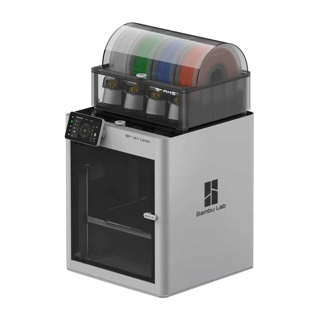 - Включає 3Д-принтер X1-Carbon і AMS – Автоматичну Систему обробки Матеріалів.