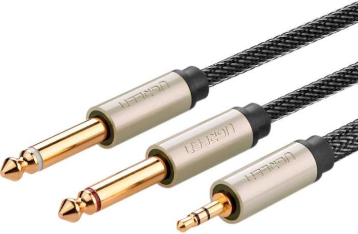 Аудіокабель UGREEN 3,5 мм TRS на подвійний 6,35 мм TS аудіокабель 1 м (сірий)