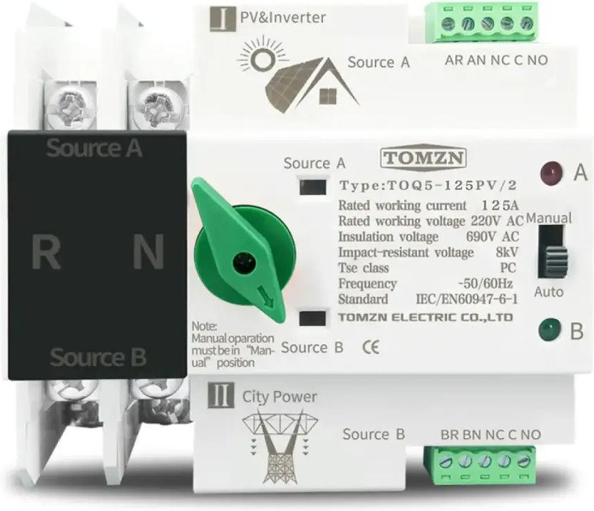 Додатково: | Призначений для перемикання між системами з інвертором від сонячних батарей на міську мережу. |