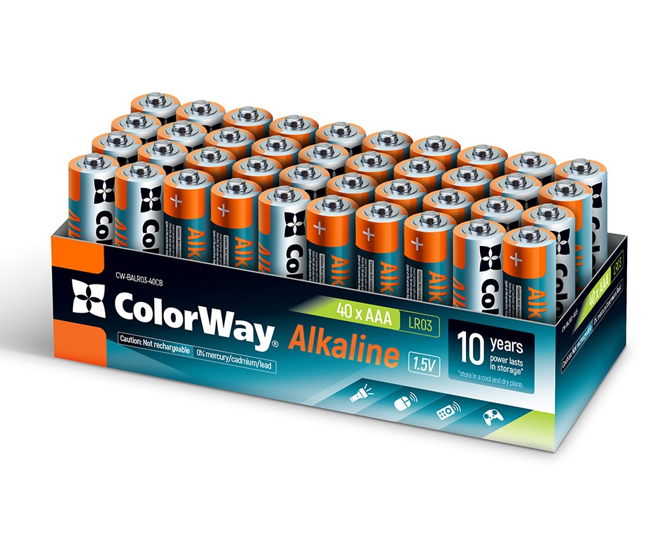 Батарейка AAA (LR03), лужна, СolorWay Alkaline Power, 40 шт, 1.5V, Color box (CW-BALR03-40CB)