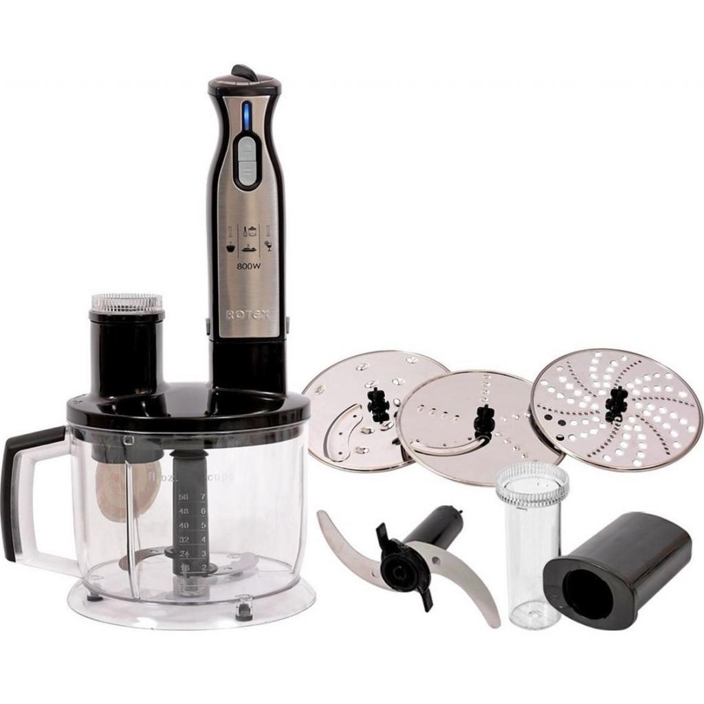 Разом з самим кухонним аксесуаром погружного типу виробник пропонує такі корисні аксесуари, як чаша з подрібнювачем, обсягом 1,75 л, мірний стаканчик ємністю 0,6 л, вінчик, тертку для картоплі, диски для нарізки та подрібнення різних овочів, фруктів та багатьох інших продуктів. Спеціальну насадку для пюре і диск для нарізки соломкою для жульена і картоплі фрі можна купити окремо.