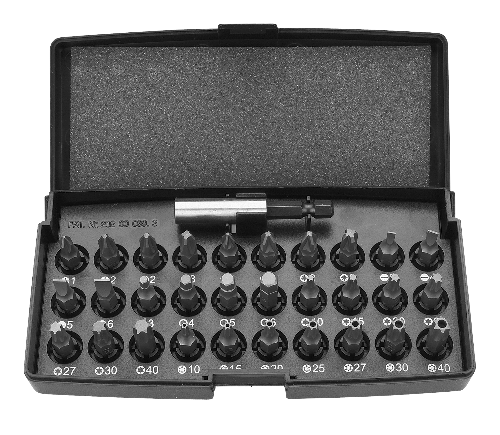 | Маркування біт Torx (T): | T10, T15, T20, T25, T27, T30, T40 |