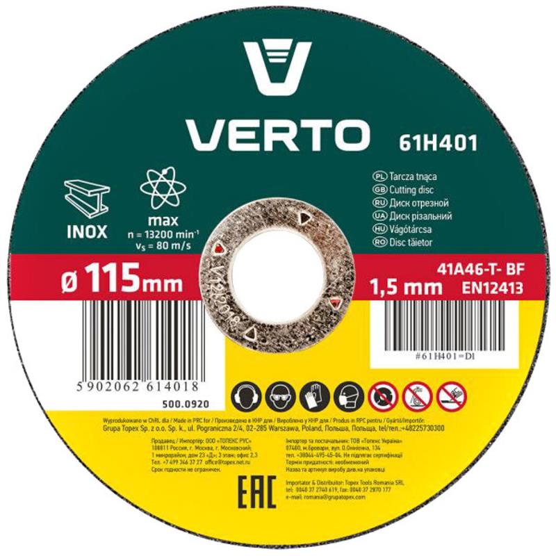 Диск відрізний Verto по металу 115х1.0х22.2 мм, прямий