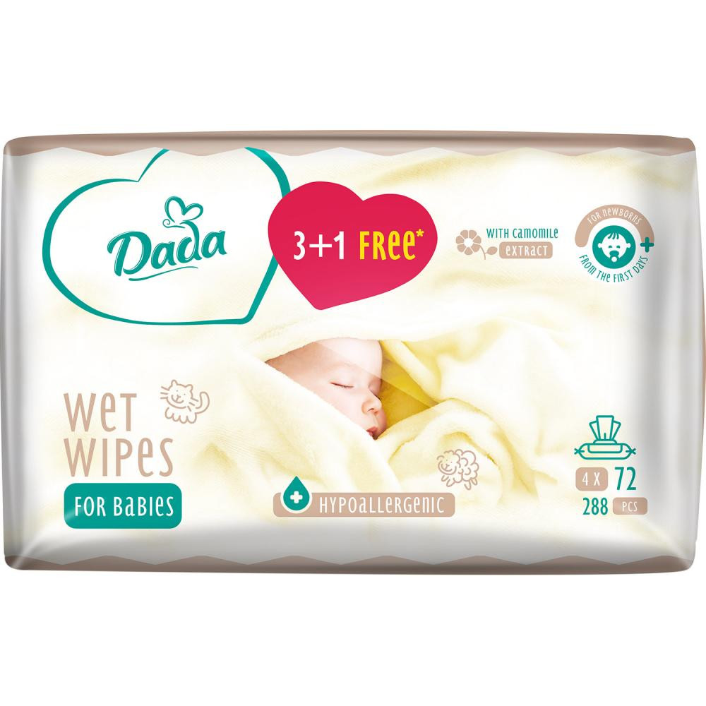 Дитячі вологі серветки Dada 3+1 з екстрактом ромашки (4 х 72 шт.) (4820174980863)