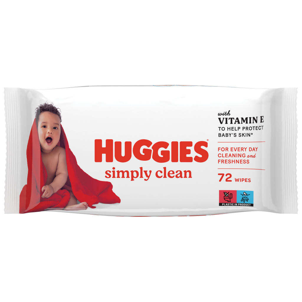 Вологі серветки Huggies Simply Clean ідеально підходять як для ніжної шкіри новонародженого малюка, так і для активних прогулянок з дорослими дітьми або в дорогу.