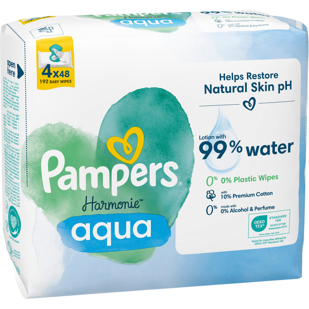 Дитячі вологі серветки Pampers Harmonie Aqua 4 пачки х 48 шт (8006540556139)