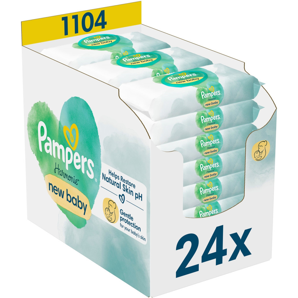 Дитячі вологі серветки Pampers Harmonie New baby 24 пачки х 46 шт (8006540815953)