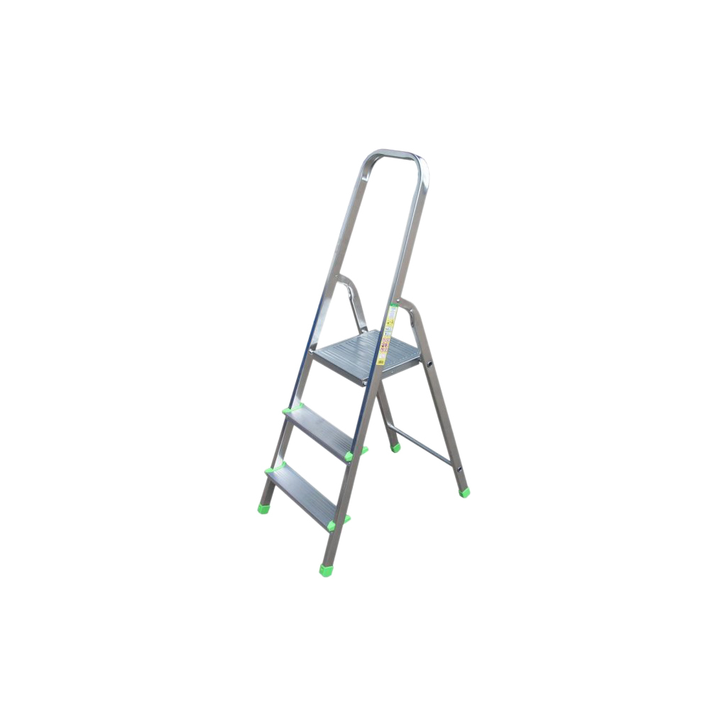 Одностороння підлогова алюмінієва переносна драбина (стрем'янка) для професійного використання, зі стабільною алюмінієвою платформою.