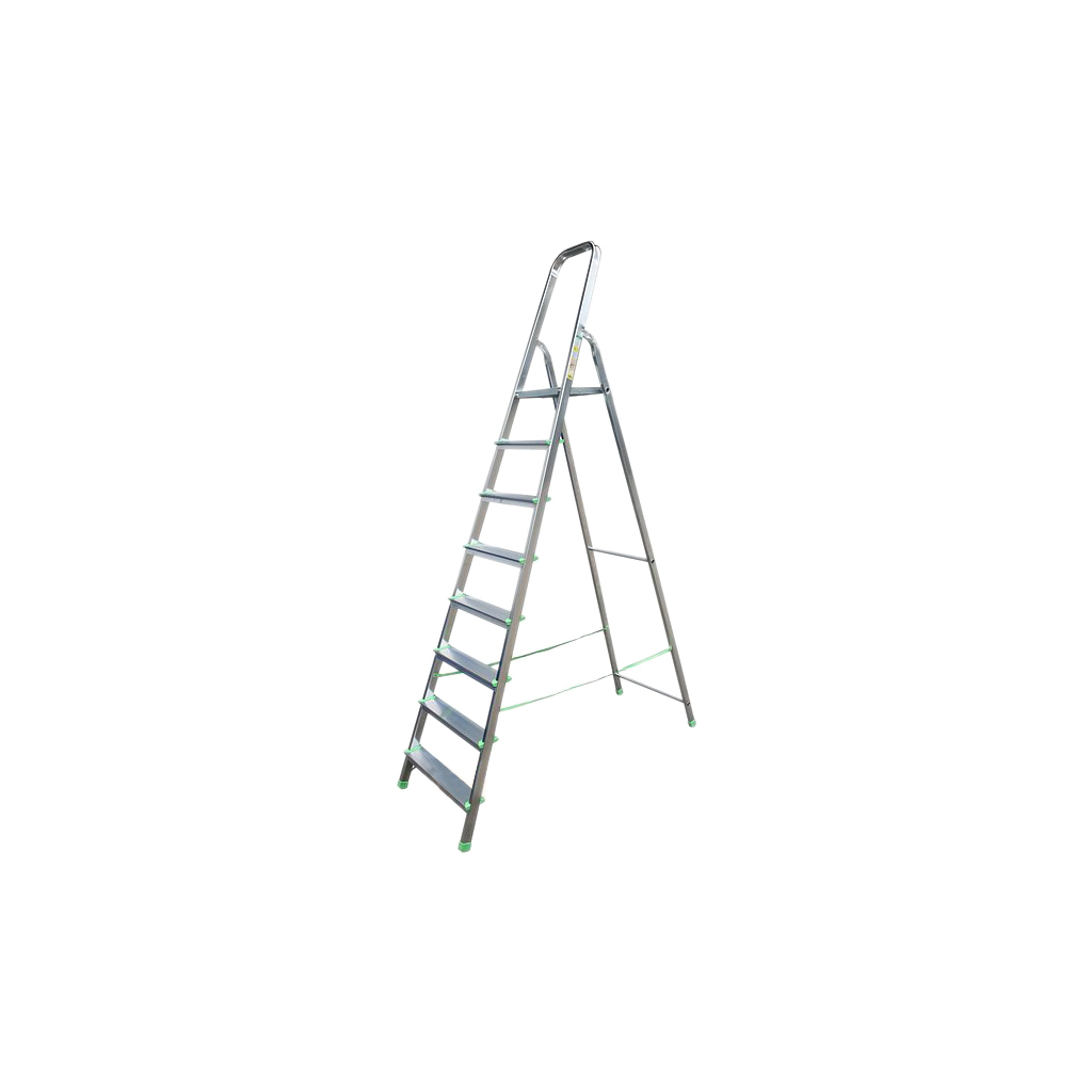Одностороння підлогова алюмінієва переносна драбина (стрем'янка) для професійного використання, зі стабільною алюмінієвою платформою.
