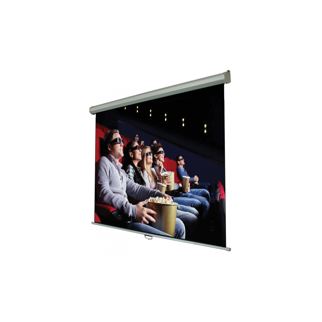 Екран кріпиться на стіні або стелі. Для зручності керування екран оснащений автоматичним фіксатором висоти. Вам достатньо висунути його на потрібну висоту, і він залишиться на цьому значенні. Полотно діагоналлю 84 дюйми забезпечує відмінну картинку розміром 186х105 см. Співвідношення сторін: 16:9.