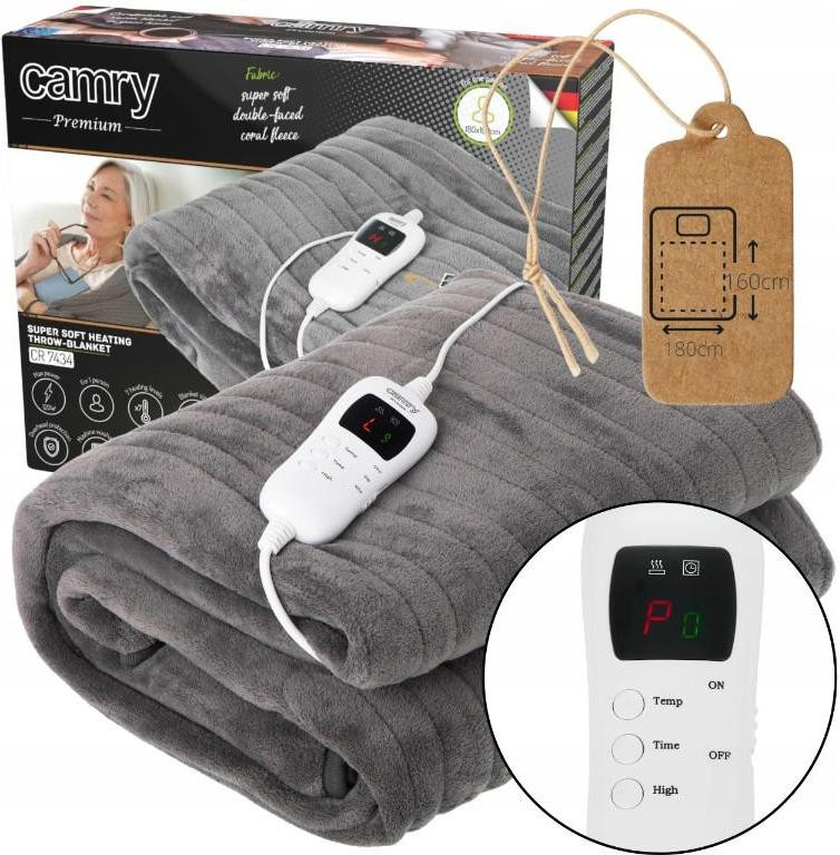 Електроковдра Camry CR 7434 з таймером односпальна/ 120 Вт/ 160x180/ 9 рівнів нагріву/ автовимкнення