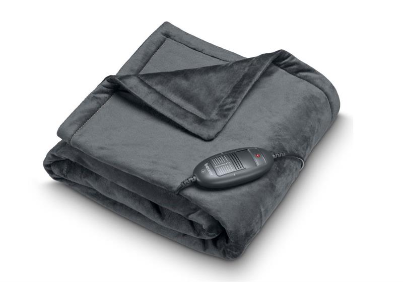 Електропростирадло Beurer, від мережі, 150х130см, 100Вт, 6 режимів, фліс, сірий