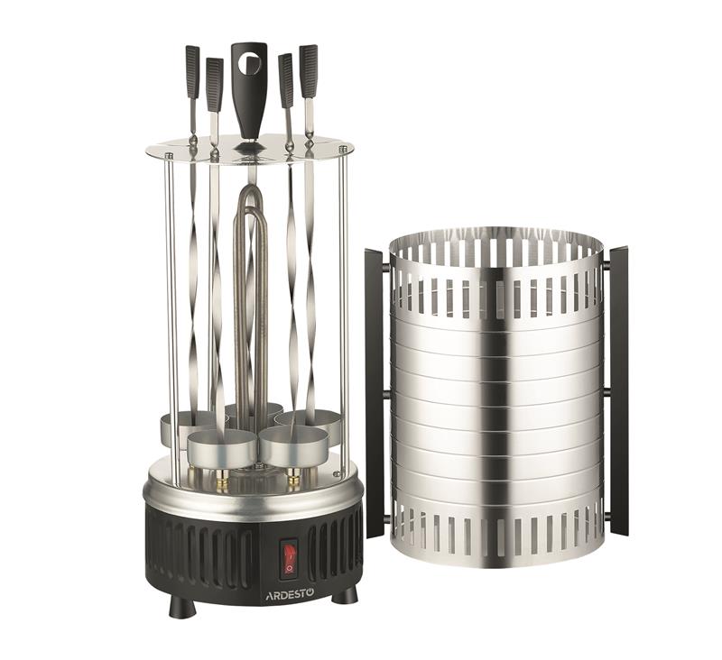 Електрошашличниця VEG-HY1000, 900 Вт, 5 шампурів, обертання 360, U-подібні нагрівачі, алюмін. кожух