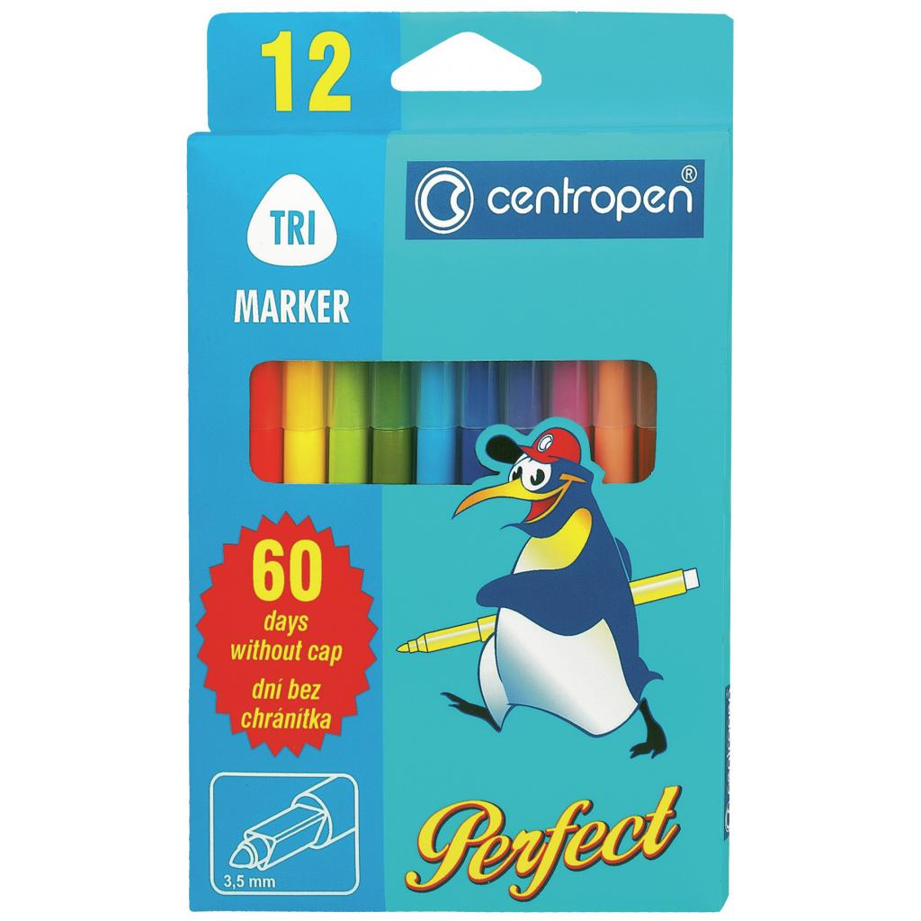 Яскравий практичний набір фломастерів Centropen з продуманою палітрою кольорів, неодмінно сподобається вашій дитині. Фломастери легко змиваються з рук навіть холодною водою і дуже легко відпираються. У відповідності з вимогами до безпеки, фломастери забезпечені вентильованими ковпачками. Корпус з поліпропілену оберігає чорнило від передчасного висихання, гарантує тривалий термін служби.