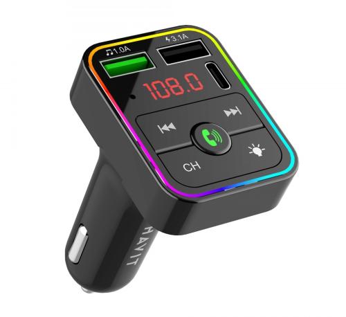 FM-модулятор Havit HV-FM812BT, Black, від прикурювача, Bluetooth 5.3 + EDR, 2xUSB / Type-C, microSD / USB / Type-C / AUX / FM передавач (87.5-108МГц)
