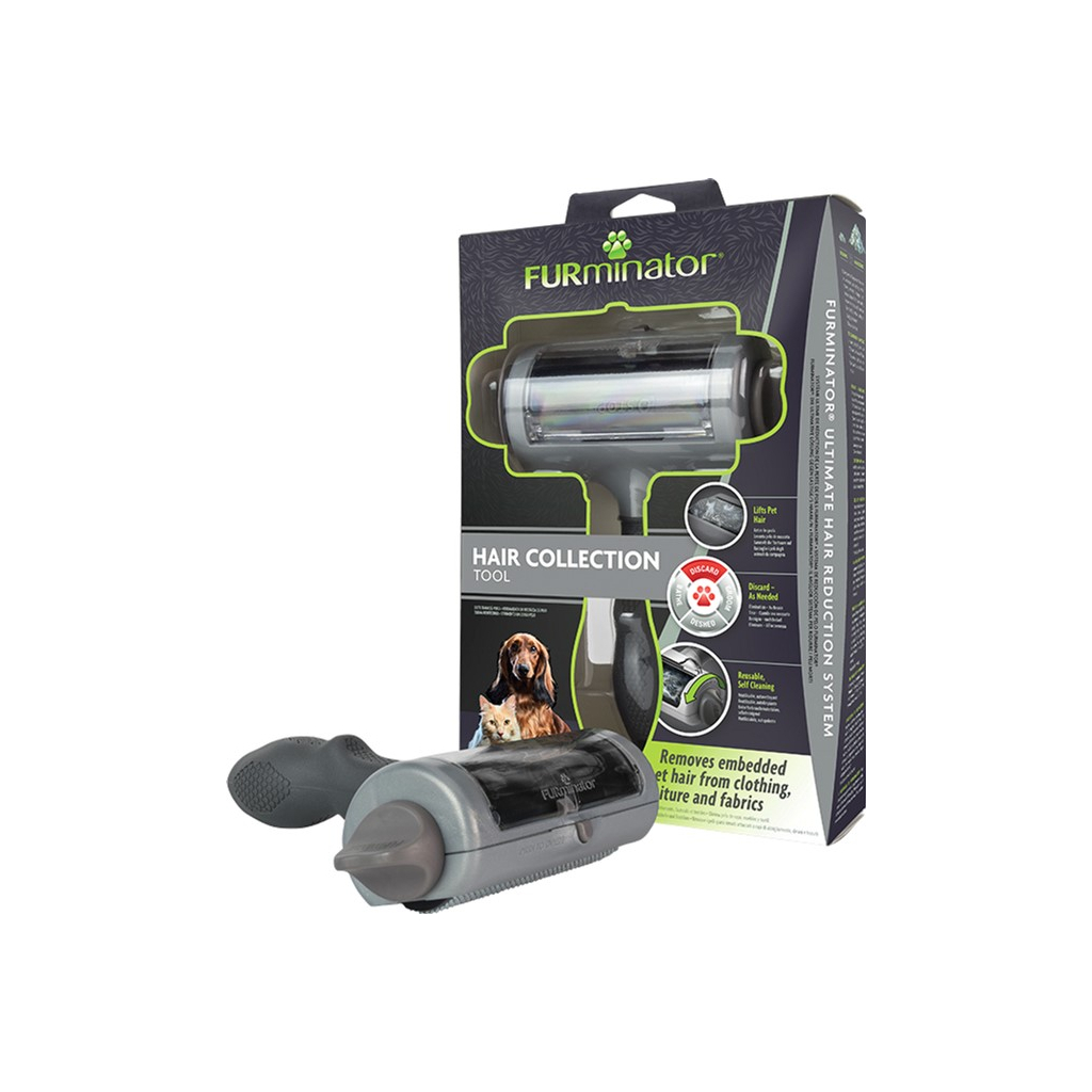 Щітка для збирання шерсті FURminator прибирає випалі волоски тварин з одягу, меблів і тканин. Інструмент ефективний для більшості типів шерсті, як для короткої, так і для довгої, у всіх тварин, що линяють. Використовуйте їх за потребою, зокрема щодня. Інструменти також можна використовувати для прибирання після вичісування вашого вихованця, позаяк після цього залишається багато шерсті, що випала.