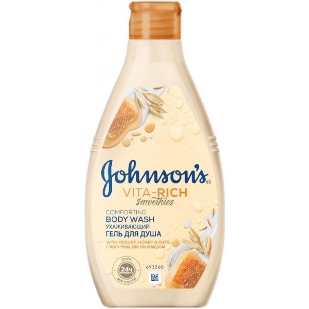 Побалуйте себе розкішним гелем для душу Johnson's Vita-Rich з йогуртом, медом і вівсом.
