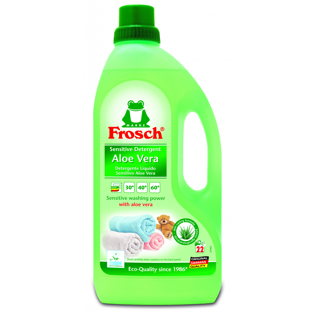 Концентрований рідкий засіб Frosch для прання Алое Вера забезпечує високу ефективність прання кольорових, білих та чорних речей. Спеціальна формула з натуральними екстрактами яблучної кислоти та рослинними ПАР, а також інгібіторами перенесення фарби ефективно відпирає білизну, зберігаючи первісну яскравість кольорової тканини.