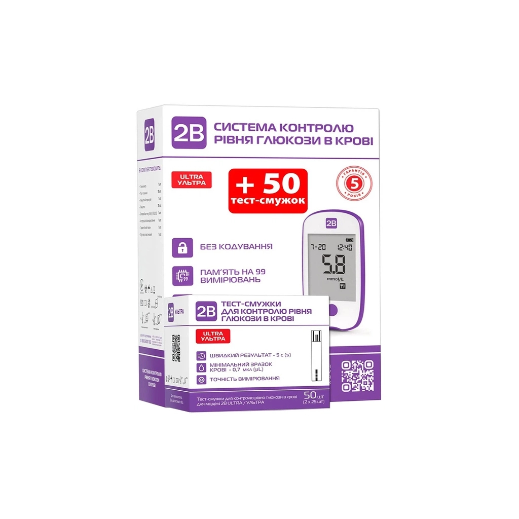 Глюкометр 2B Ultra + Тест-смужки Ultra 50 шт. (7640296963943)