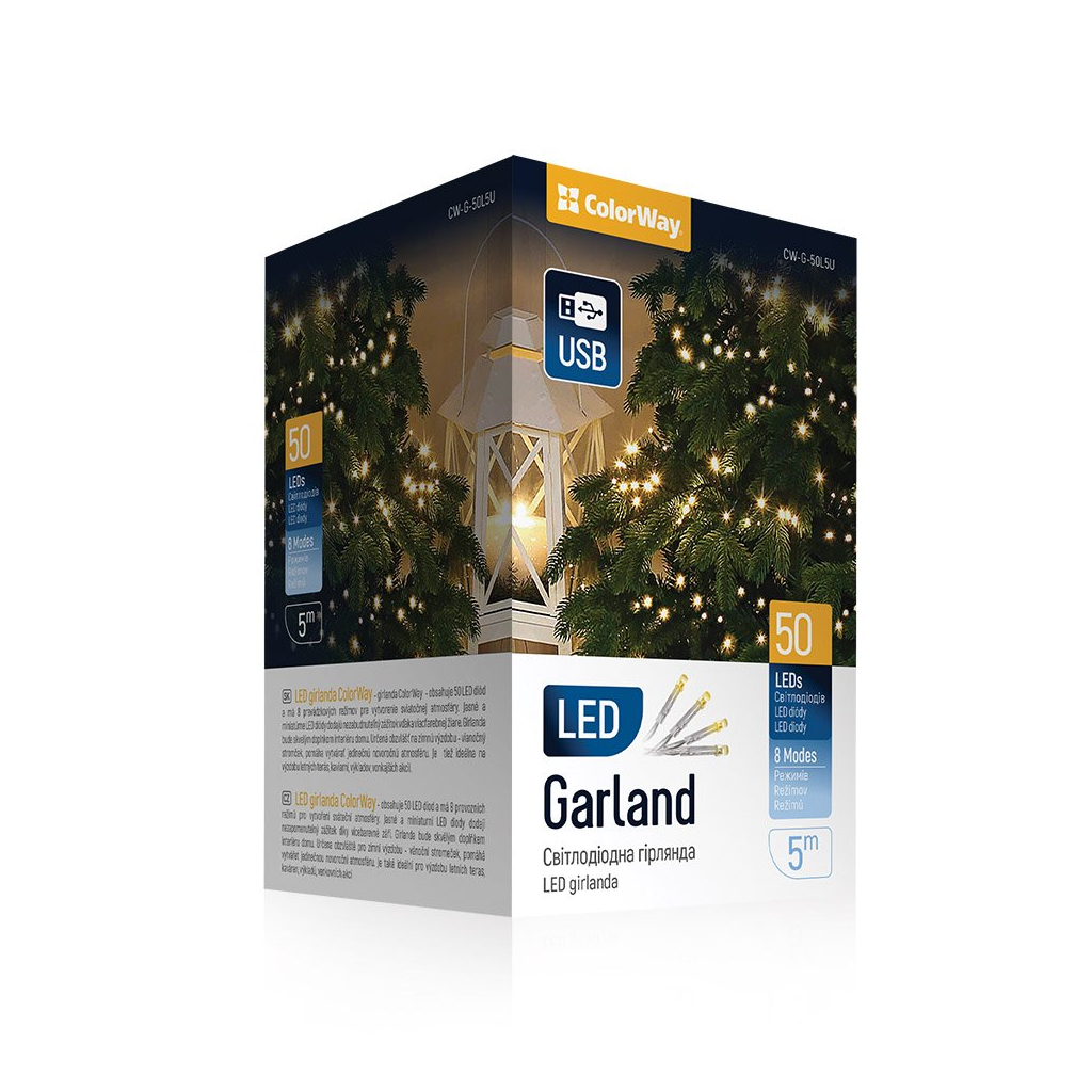Світлодіодна гірлянда ColorWay — це 50 світлодіодів і 8 режимів роботи для забезпечення святкової атмосфери. Яскраві і мініатюрні світлодіоди подарують легкість і незабутні враження завдяки приємному теплому світлу.
