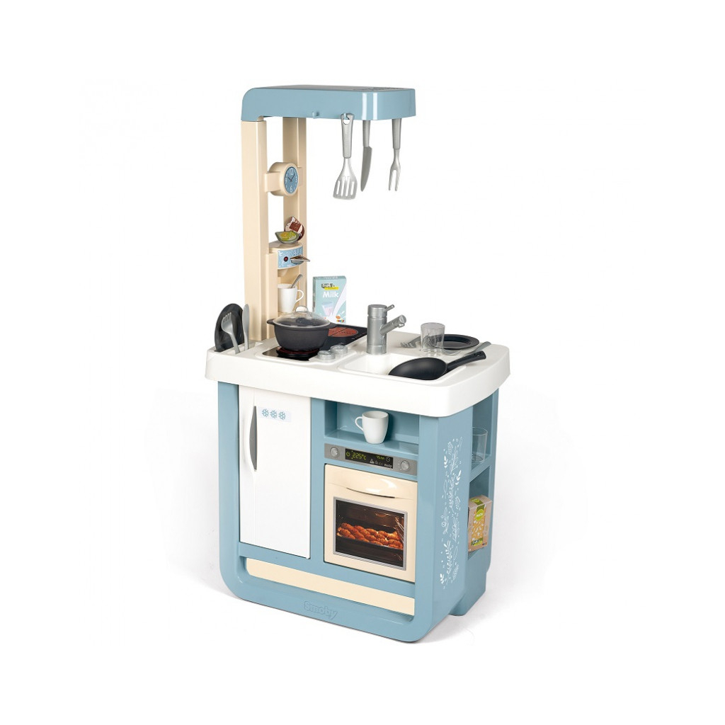 | У комплекті: | 1 конфорка плити зі звуковими ефектами, при натисканні звучать різноманітні звуки приготування їжі, духова шафа, холодильник, витяжка, мийка з краном, еспресо машина з капсулами, безліч поличок для зберігання аксесуарів, 23 аксесуари: каструлька з кришкою, тарілки, столові прилади,, чашки та інше |