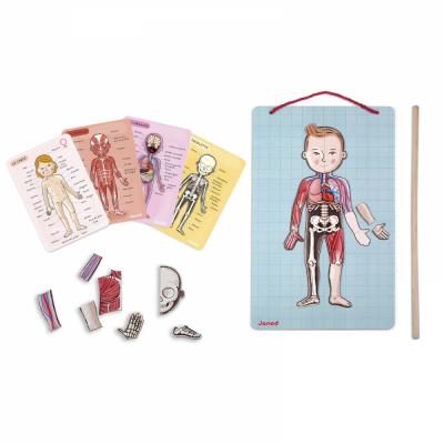 Вивчай будову тіла людини в ігровій формі разом з магнітним набором від французького бренду Janod. 76 магнітних частинок і 1 дошка-основа для навчання та збирання різноманітних частин людського тіла. Гра пропонує скласти 4 карти людини в залежності від тематики: будова опорно-рухового апарату, будова м’язів, розміщення органів та судин, а також – тіло людини. У наборі – маленька дерев’яна вказівка. Батьки можуть для зручності повісити дошку-основу на стіні і розповідати діткам про будову людського тіла. Цей набір отримав золоту відзнаку на незалежному конкурсі споживачів у Опенхаймі, а також був визнаний у США. Рекомендовано для дітей з 7 років.