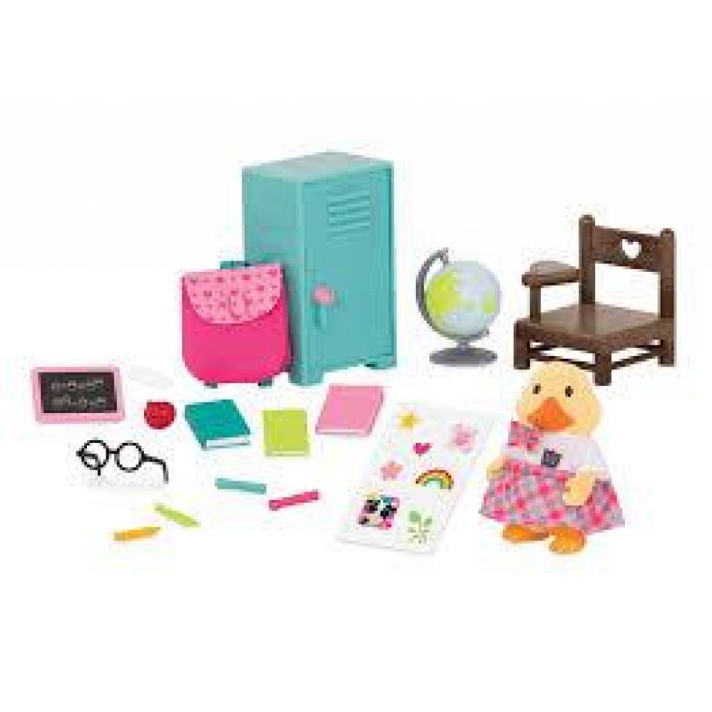 Ігровий набір - Шкільні аксесуари від Li`l Woodzeez стане прекрасним доповненням до шкільного класу. Набір сумісний з іграшками цієї серії, і діти можуть зробити класну кімнату ще цікавішою! Так, у набір входить: шафка, стілець, рюкзак, книжки, глобус, окуляри, шкільне приладдя тощо. Крім того, у набір також входить лялька Ллойда Вуззі.