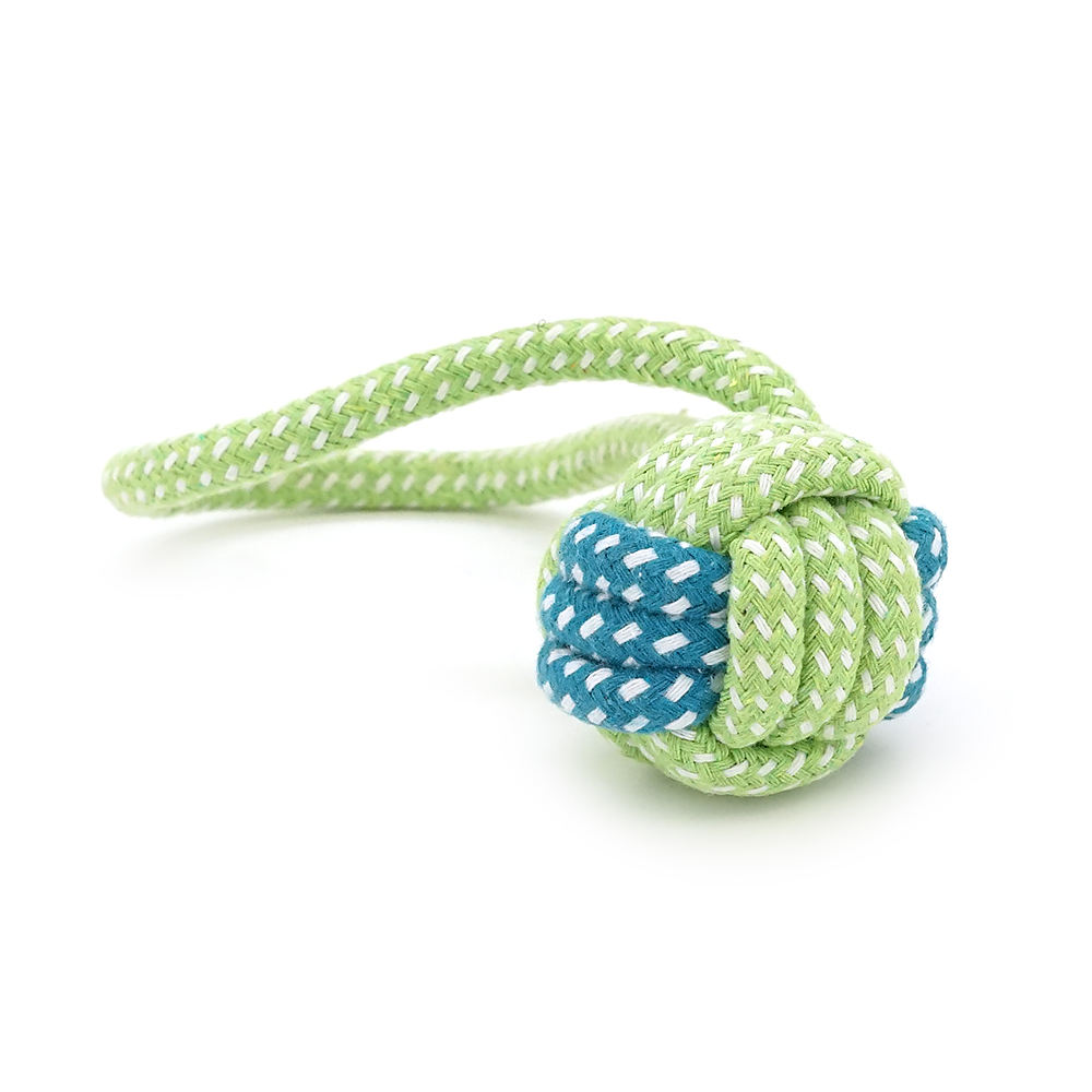 Іграшка з бавовняної мотузки з вузлами для собак у вигляді кулі з петлею, 6*14см, зелено-синя