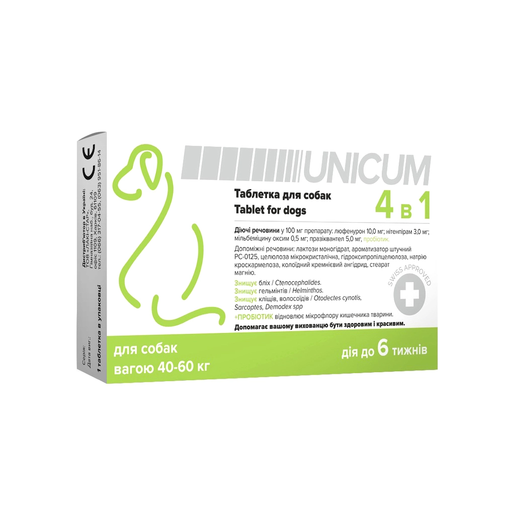 Краплі для тварин Unicum 4 в 1 від бліх, кліщів, гельмінтів з пробіотиком для собак 40-60 кг (4820275970343)