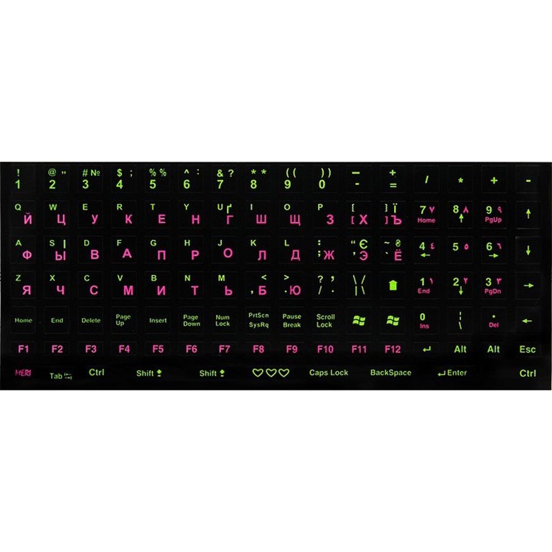 Наклейки на клавіатуру (ENG/UA/RU) Чорний/Зелений/Рожевий