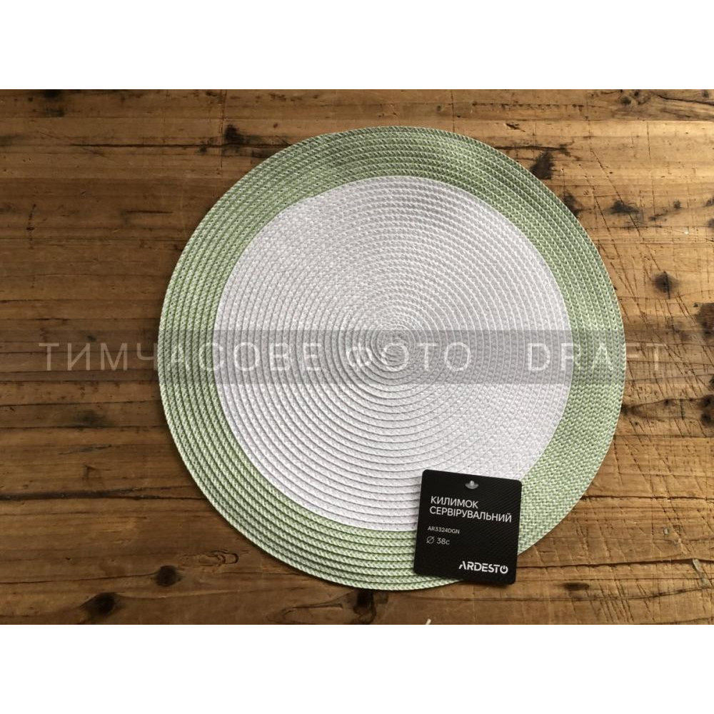 Килимок сервірувальний Ardesto, 38см, поліпропілен, кругла, біло-зелений