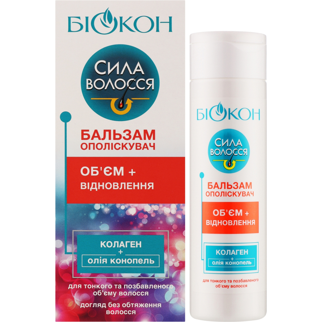 Ко��диціонер для волосся Біокон Сила волосся Бальзам ополіскувач Обєм + відновлення 205 мл (4823110303320)