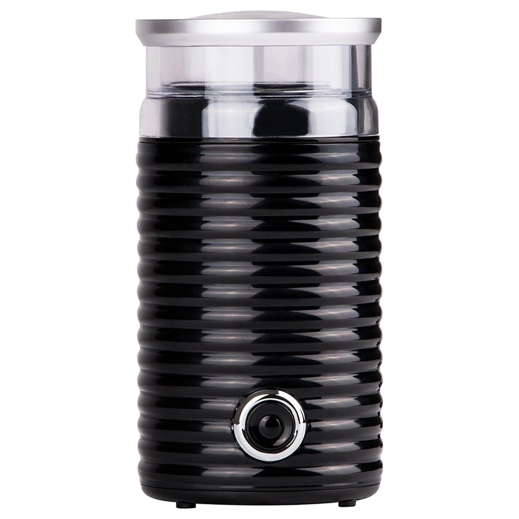 Помел та подрібнення кавових зерен, круп, трав або горіхів відбувається швидко та легко за допомогою цієї практичної машини. Незалежно від того, чи ви хочете випити свіжомеленого еспресо або подрібнити горіхи: прилад працює на потужному повністю автоматичному рівні потужністю 160 Вт і управляється за допомогою кнопки включення. Два міцні леза з нержавіючої сталі забезпечують хороші результати щоразу. Компактний розмір та сучасний дизайн кухонного пристрою дозволяє легко зберігати його на вашій кухні.