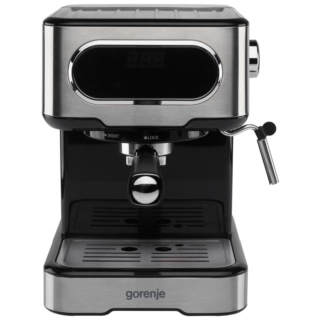 Кавоварка еспресо Gorenje ESCM15DBK зроблена з нержавіючої сталі, об'ємом 1,5 л і потужністю 1100 Вт.