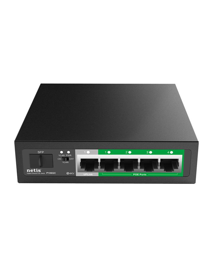 Комутатор Netis P106GC 4xGE PoE+, 1xGE Uplink, 1xGE SFP, некерований