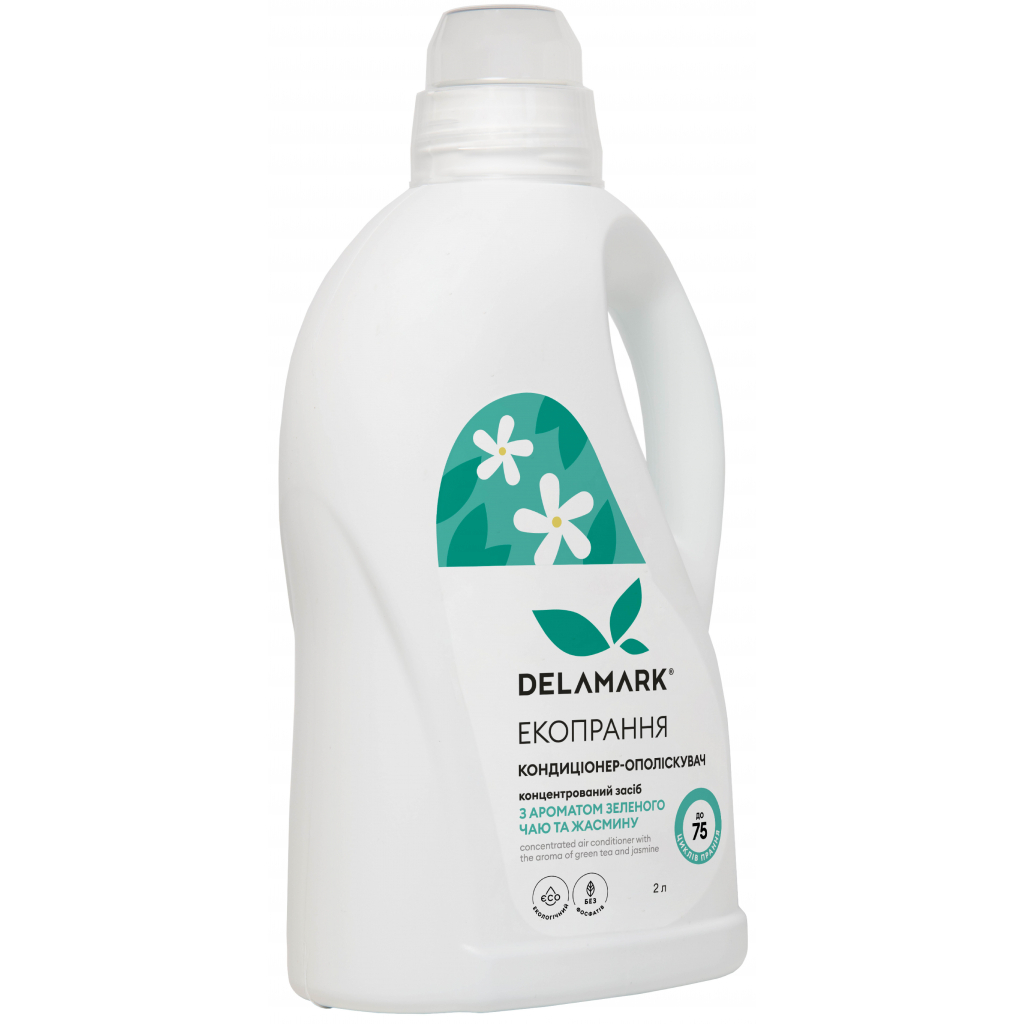 Кондиціонер-ополіскувач DeLaMark з ароматом зеленого чаю й жасмину — екологічний концентрований засіб для завершального етапу прання. Має безпечний для людини та природи склад. Робить випрані речі ніжними та м'якими. Полегшує прасування, не дає речам електризуватися й має легку дезінфекційну дію. Надає білизні ніжного аромату.
