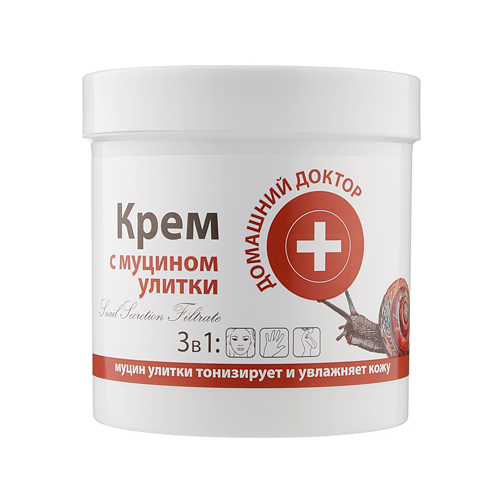 Бренд «Домашній Доктор» піклується про те, щоб ваша шкіра була здоровою і сяяла красою. Саме для цього був створений універсальний крем з муцином равлика. Цей компонент допомагає уповільнити процес старіння шкіри і допомогти їй зберігати гладкість і ніжність, незважаючи на вплив довкілля. Крем поміщений у компактну упаковку, яка завжди виявиться під рукою і підійде як вам, так і всім членам родини. Продукт має нейтральний запах і не провокує алергічних реакцій. Подарує шкірі відчуття повного комфорту і легкості.