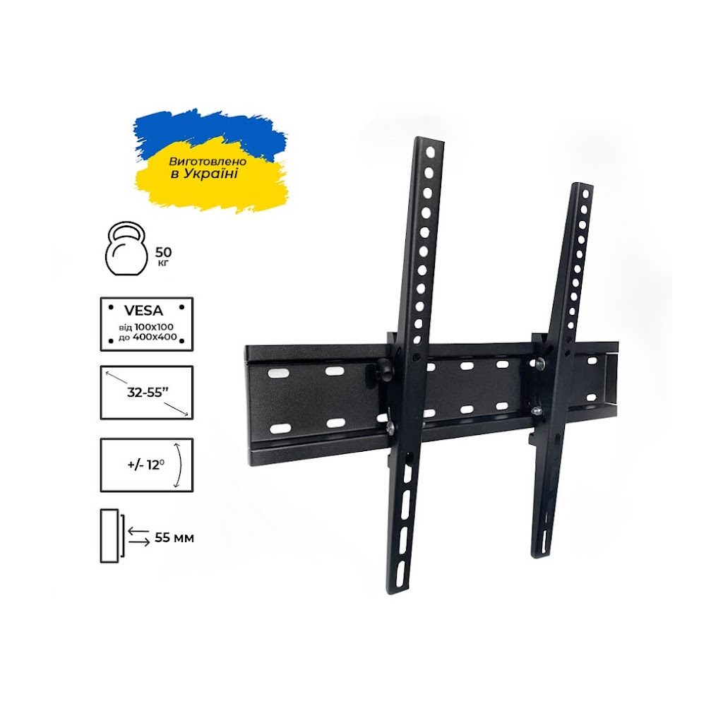 Універсальність: кронштейн сумісний з більшістю телевізорів з діагоналлю екрану від 32" до 55" та підтримує широкий діапазон розмірів VESA.