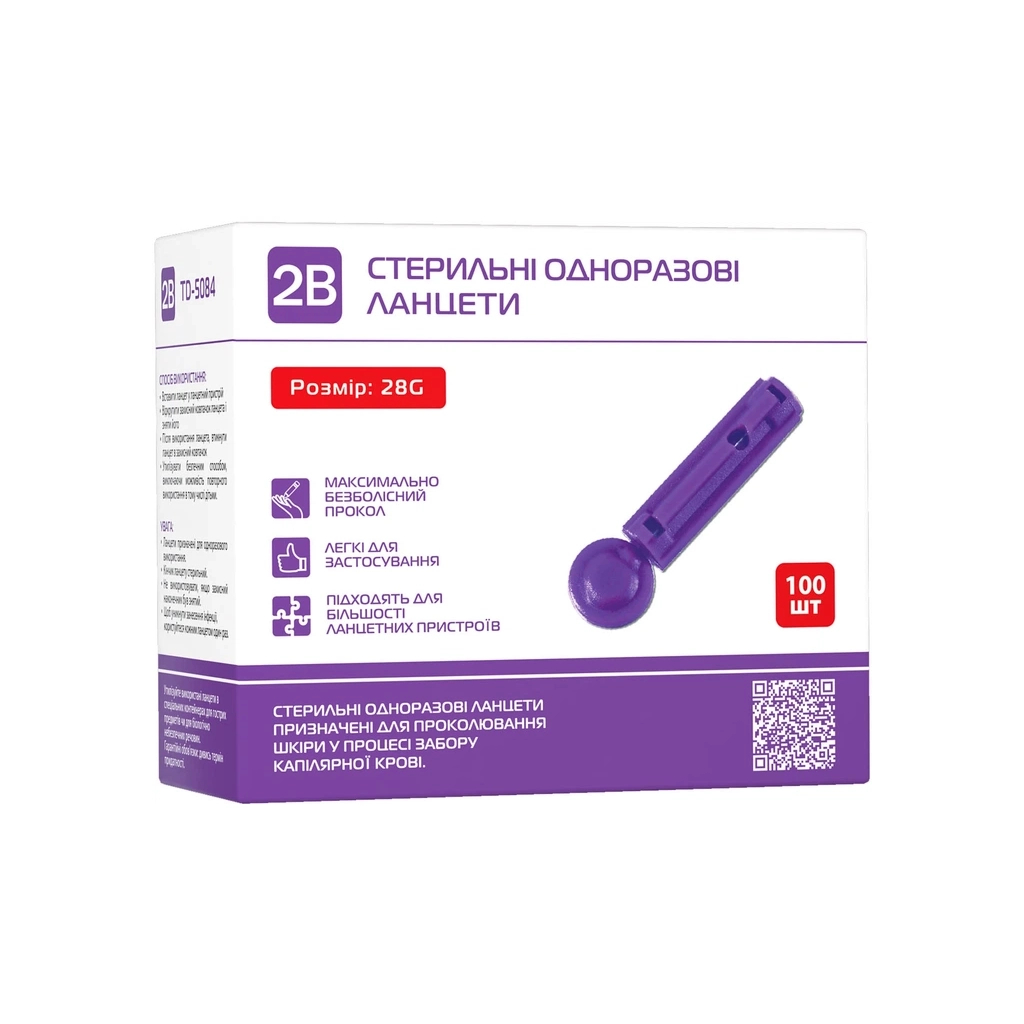 Ланцети 2B 28G Стерильні одноразові 100 шт. (7640296962113)