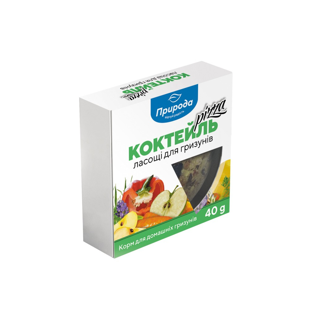 Беззернова рецептура гризунам для гарного самопочуття і міцного імунітету необхідні овочеві і трав'яні добавки до стандартного раціону. Рецептура ласощів «Піца» розроблена спеціально для декоративних гризунів як смаколик і цікава іграшка. Основа піци виготовлена зі свіжих лугових трав і люцерни, зібраних в екологічно чистих регіонах. До складу начинки входять суха морква, сухий солодкий перець і пелюстки календули. Інгредієнти багаті пектинами, вітамінами, мікроелементами. Щільна текстура ласощів допомагає улюбленцям сточувати зростаючі зуби.