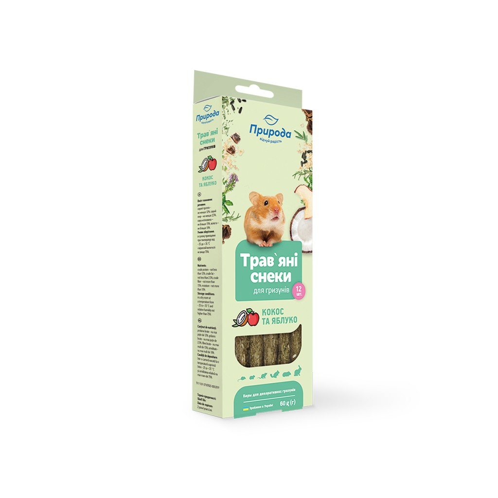 Трав’яні снеки «Кокос та яблуко» – корисні натуральні ласощі для домашніх гризунів, а також засіб для сточування зубів.