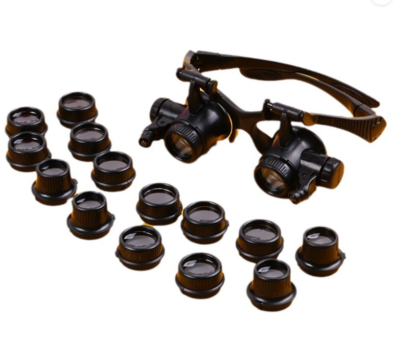 Лупа-окуляри бінокулярна NO.9892G8KX c Led підсвічуванням, 8 змінних лінз, 2,5х4х6х8х10х15х20х25, Вох