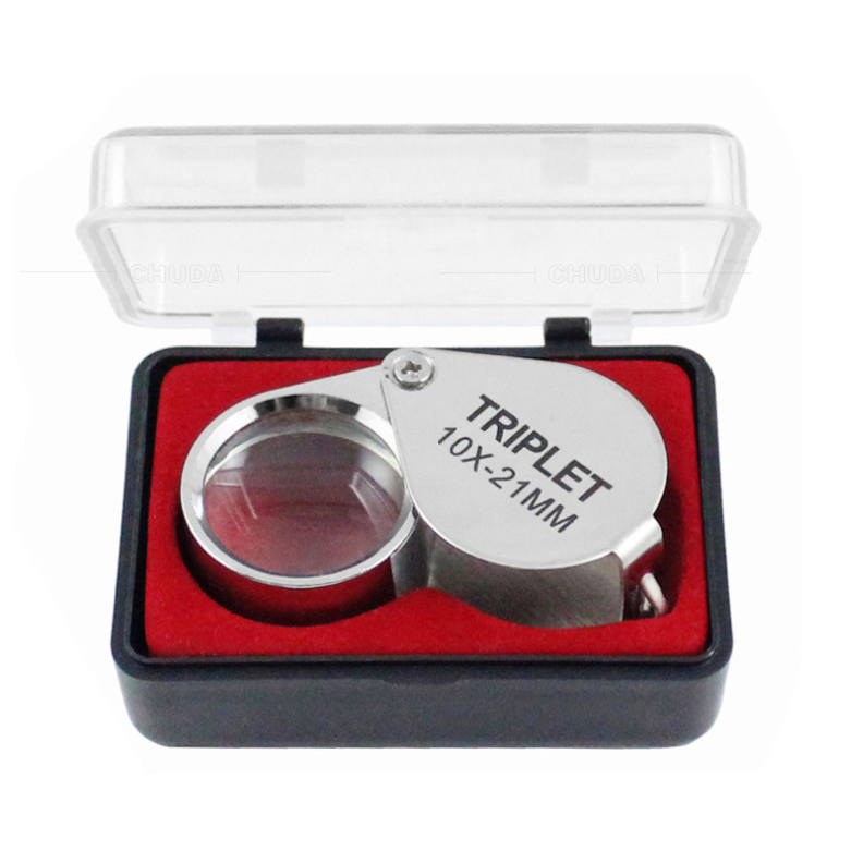 Лупа ручна TRIPLET 10X-21mm, складна (брелок), метал-скло, пластикова коробка. 42 * 24 * 18mm.