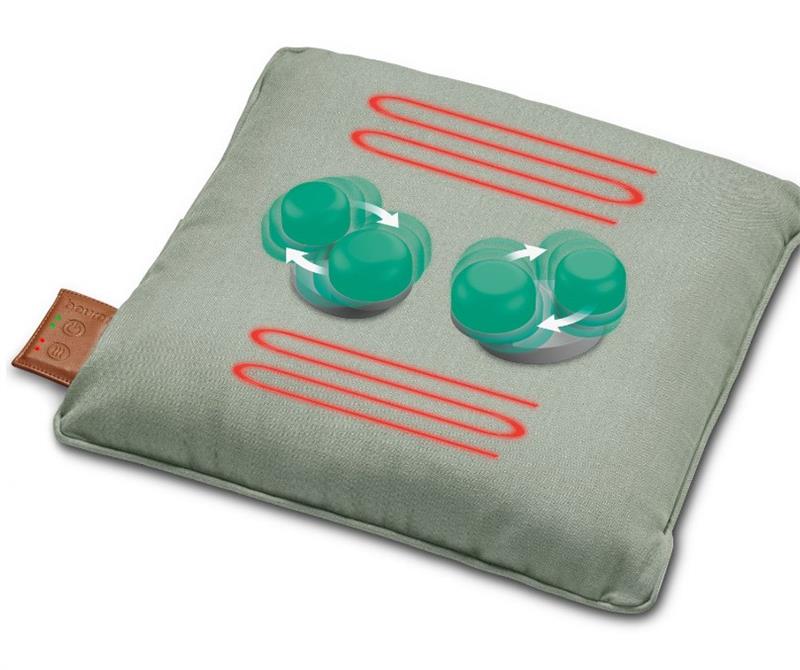 Масажна подушка Beurer для плечей, шиї, спини, ніг, літій-іонний акумулятор, змінний чохол, сірий