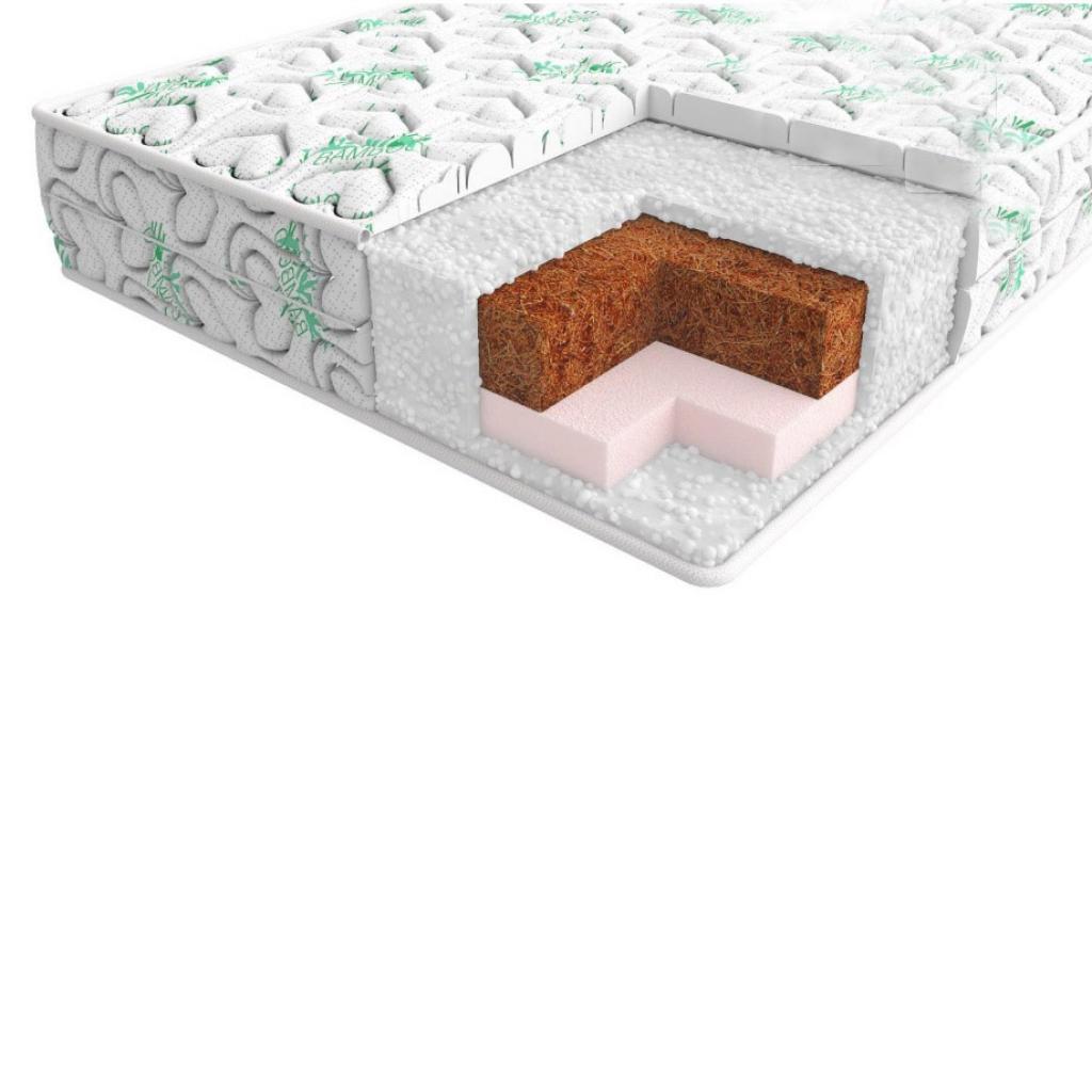 Матрац Верес Bamboo Comfort + - двосторонній дитячий матрац на основі латексованої кокосової койри і піни Elastic Foam. Матрац з різною жорсткістю сторін призначений для правильного формування кістково-м'язової мускулатури у дитини. Більш жорстка сторона з кокосової койри добре підходить малюкам до року. М'яка сторона (Elastic Foam) призначена для дитини після року, оскільки тактильні відчуття вже більш розвинені.