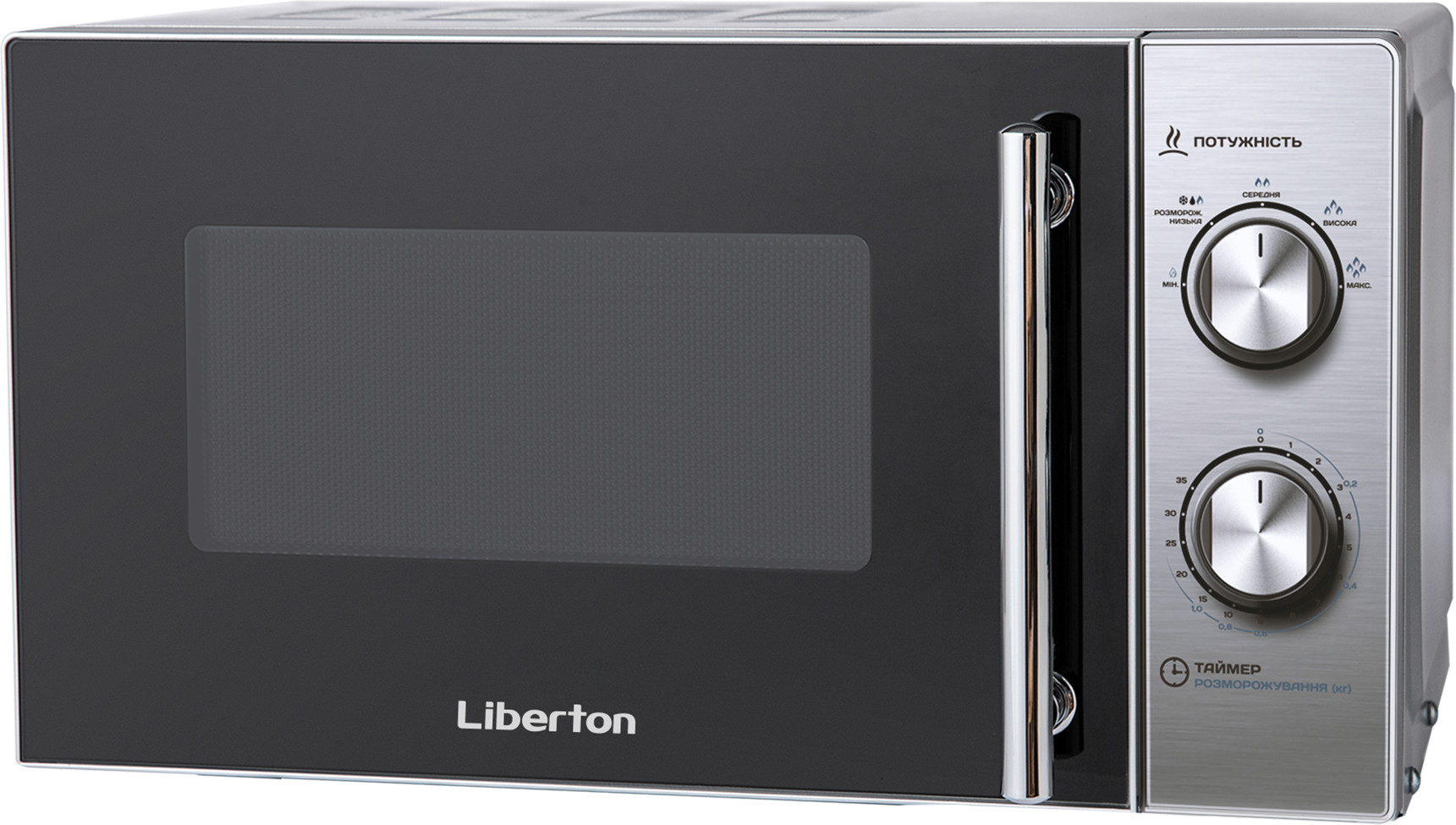 Мікрохвильова піч Liberton LMW-2091M Silver, 700W, 20 л, звичайна, 5 рівнів потужності, ручка, керування механічне